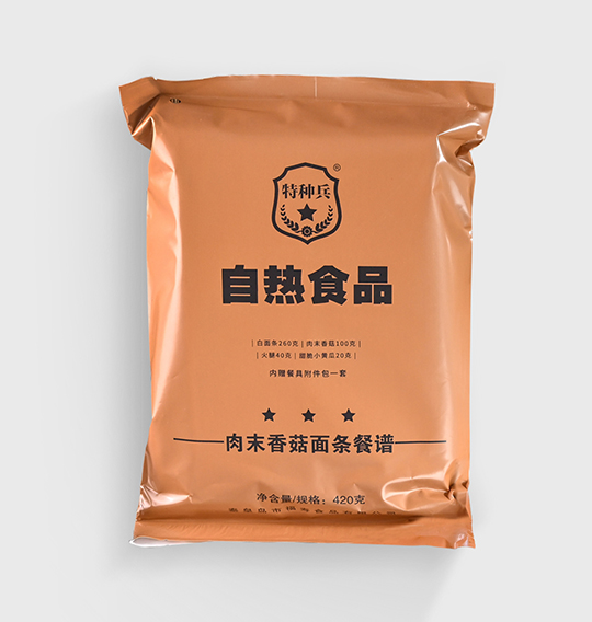 爽滑入口的白面條與營養(yǎng)豐富的肉末香菇,香氣撲鼻,營養(yǎng)均衡。搭配潤口美味的火腿與甜脆小黃瓜,不僅有營養(yǎng),而且十分下飯。高溫滅菌工藝,使其擁有常溫下超長的保質(zhì)期(24個(gè)月)。簡(jiǎn)單易操作,既可以注水后完成一刻鐘自加熱,也可微波加熱,無需明火,滿足速食時(shí)代“既便捷又營養(yǎng)健康”的追求。袋內(nèi)附有餐盒餐具,不論是工作日的午餐,還是戶外運(yùn)動(dòng)、野外探險(xiǎn)、應(yīng)急搶險(xiǎn)等多種場(chǎng)合,都可以讓你美餐一頓。