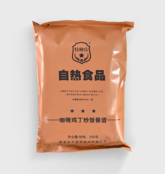 濃郁的咖喱湯汁,咸香可口的雞丁,顆顆飽滿的米飯,搭配陳皮果粒的壓縮餅干,幫助消化的同時(shí)又增加營養(yǎng)成分。香辣爽口的紅油金針菇和西紅柿蛋花湯,不需要繁瑣的烹飪也能隨時(shí)隨地享用充滿異域風(fēng)味又營養(yǎng)均衡的優(yōu)質(zhì)餐食。高溫滅菌工藝,使其擁有常溫下超長的保質(zhì)期(24個(gè)月)。簡單易操作,既可以注水后完成一刻鐘自加熱,也可微波加熱,無需明火,滿足速食時(shí)代“既便捷又營養(yǎng)健康”的追求。袋內(nèi)附有餐盒餐具,不論是工作日的午餐,還是戶外運(yùn)動(dòng)、野外探險(xiǎn)、應(yīng)急搶險(xiǎn)等多種場合,都可以讓你美餐一頓。